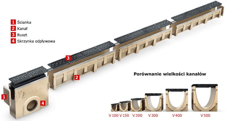 Kanały, do których dedykowany jest ruszt, wykonane są z polimerobetonu, materiału charakteryzującego się znakomitą stabilnością chemiczną i mechaniczną. Taka kompozycja gwarantuje odporność na różnorodne substancje chemiczne, co jest szczególnie istotne w strefach przemysłowych czy na obszarach narażonych na intensywne opady deszczu. System Multiline oferuje różnorodność szerokości kanałów oraz krawędzi ochronnych, co daje możliwość idealnego dopasowania do specyfiki projektu i wymagań użytkowych.