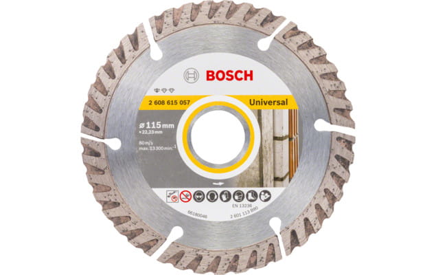 Die Diamanttrennscheibe „Standard for Universal“ ermöglicht effektives Schneiden in gängigen Baumaterialien. Die optimierte Diamantmatrix sorgt dank der hohen Qualität der Scheibe für solide Ergebnisse. Das Bosch-Kompetenzzentrum für Diamanttechnik in der Schweiz sorgt dafür, dass diese Standards eingehalten werden. Das Produkt ist zum Schneiden von Baumaterialien wie Beton oder Mauerwerksuntergründen bestimmt.