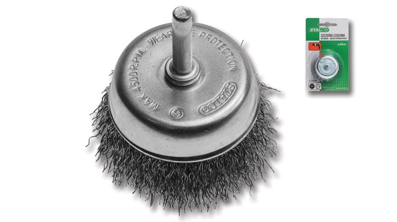 Szczotka wykonana jest z trwałych materiałów, które zapewniają jej długowieczność i odporność na zużycie. Firma STALCO, znana z wysokiej jakości produktów, zastosowała sprawdzone rozwiązania technologiczne, dzięki czemu szczotka charakteryzuje się wysoką wytrzymałością. Konstrukcja szczotki optymalizuje równomierne rozprowadzenie sił roboczych, minimalizując wibracje i zwiększając komfort pracy. Powierzchnie szczotki są zaprojektowane tak, aby skutecznie usuwać brud, korozję i powłoki, czyniąc ją niezastąpionym narzędziem w każdym warsztacie.