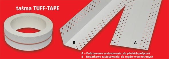 Najważniejszymi zaletami taśmy GK TUFF TAPE są jej trwałość i możliwość pełnego wykorzystania materiału, co przekłada się na wydajność ekonomiczną. Wielokrotnie mocniejsza od papierowych alternatyw, umożliwia wykonanie estetycznych i solidnych łączeń oraz wykończeń. Doskonale sprawdza się w miejscach wymagających prostej linii wykończeniowej rogów wewnętrznych.