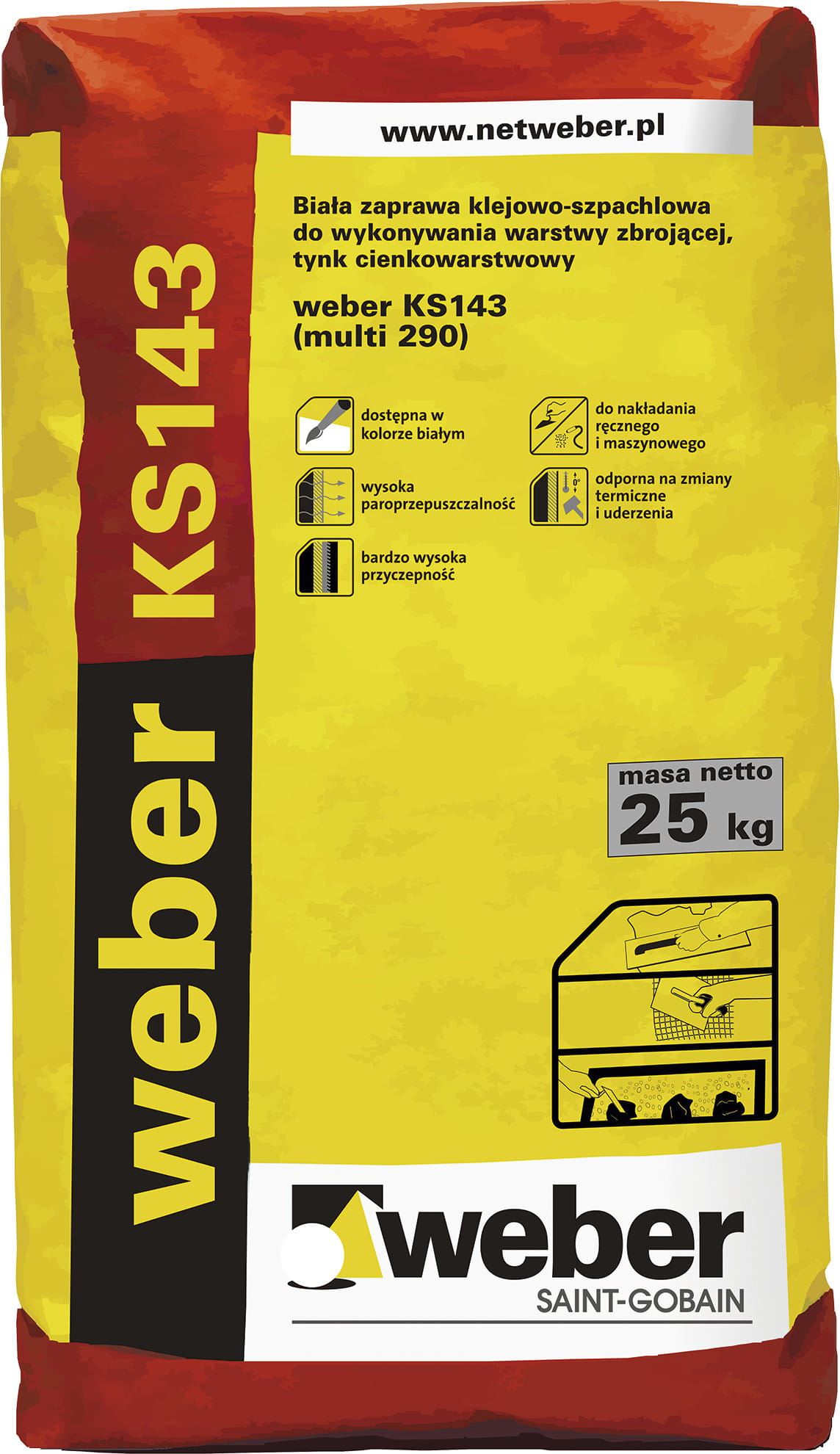 Dzięki unikalnym właściwościom, klej WEBER KS143 oferuje wiele korzyści, które są kluczowe dla skuteczności i trwałości systemów ociepleń. produkt charakteryzuje się bardzo dobrą przyczepnością do podłoży mineralnych i izolacyjnych, co zapewnia solidność montażu. Produkt jest dostępny w estetycznym, białym kolorze, co sprawia, że może być stosowany we wszystkich typach aranżacji. Jego paroprzepuszczalność gwarantuje odpowiednią cyrkulację powietrza, eliminując ryzyko powstawania wilgoci, a doskonałe właściwości aplikacyjne zdecydowanie ułatwiają jego użytkowanie.