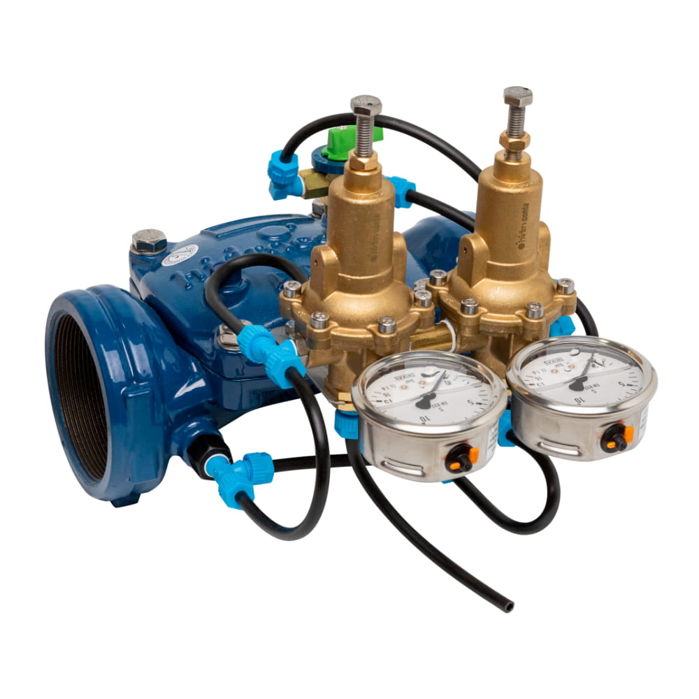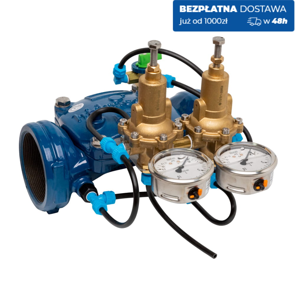 Ein Ventil, das den Wasserfluss hinter dem Ventil verhindert, wenn der Eingangsdruck unter den an der „Haltefernbedienung“ eingestellten Wert fällt. Wird am häufigsten nach einem Feuerabzweig verwendet, um durch Absperren des Brauchwassers den entsprechenden Druck darin sicherzustellen. Reduziert und stabilisiert unter normalen Betriebsbedingungen den Wasserdruck im Haushalt. Erfüllt die Anforderungen der Norm PN-EN 1074. Das Ventil kann in horizontaler, vertikaler und mittlerer Position montiert werden.