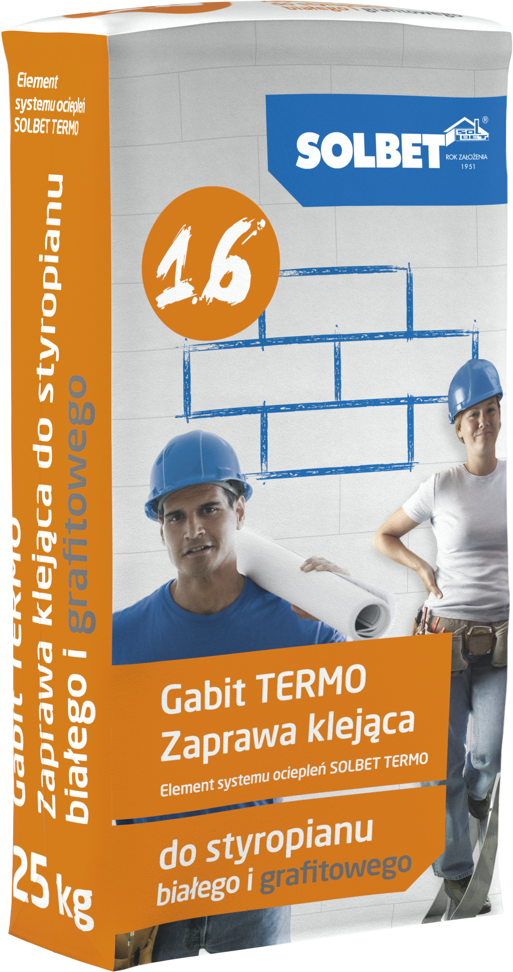 Zaprawa klejąca do styropianu Gabit TERMO 1.6 służy do przyklejania płyt styropianowych do podłoża w systemach ociepleń budynków nowych i poddawanych termomodernizacji. Może być używana do prac ociepleniowych z wykorzystaniem styropianu grafitowego, pod warunkiem ścisłego przestrzegania zaleceń zawartych w Karcie Technicznej Wyrobu i/lub instrukcji dostępnej na stronie solbet.pl.