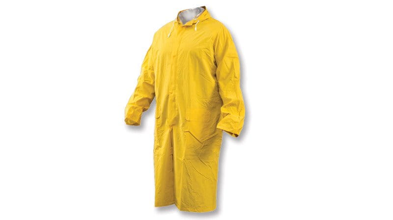 Opis szczegółowy materiał: 100% poliester płaszcz z kapturem o długości 120 cm szwy szyte i spawane zapięcie na zamek z zatrzaskami wentylacja w części tylnej dwie kieszenie