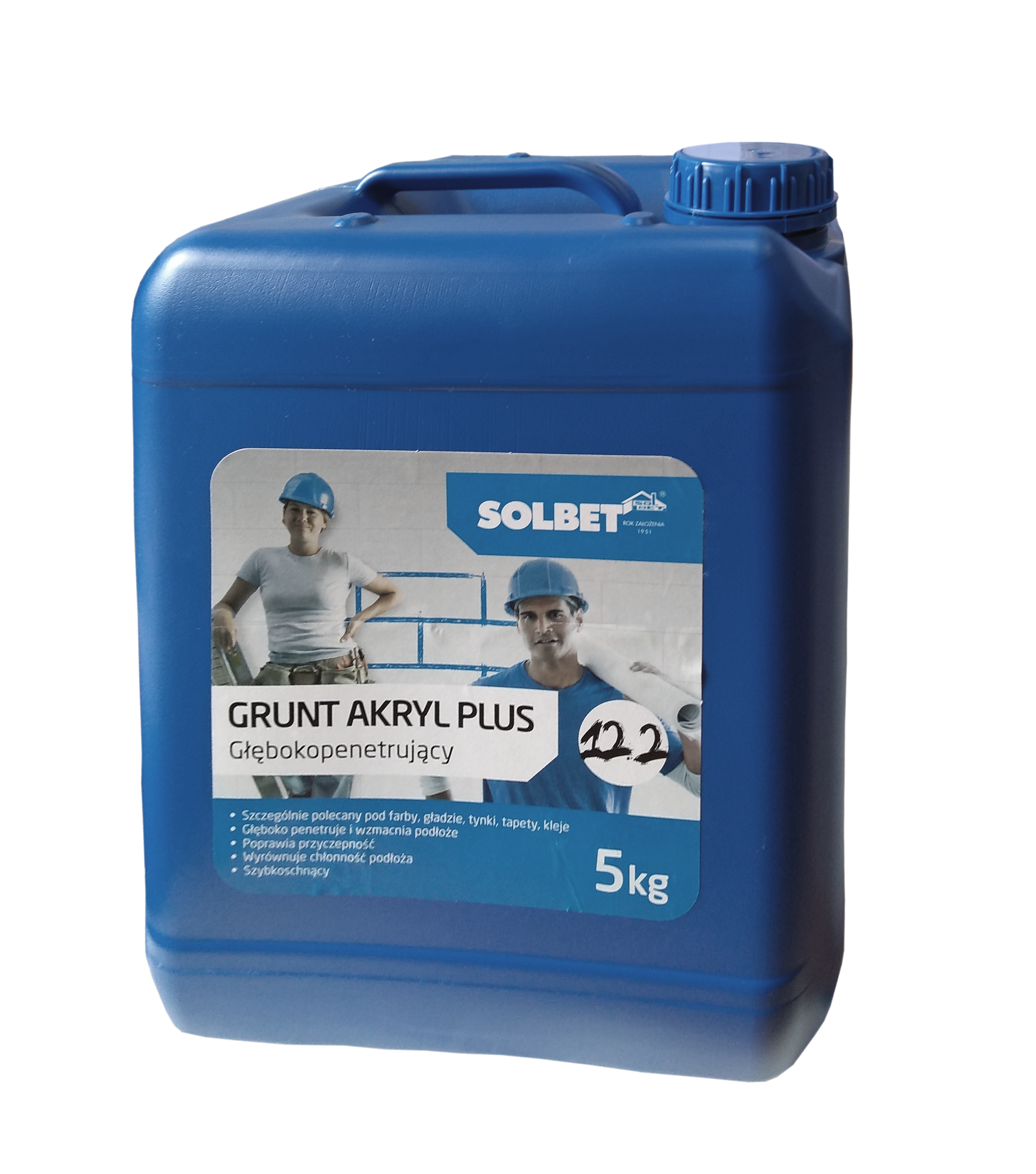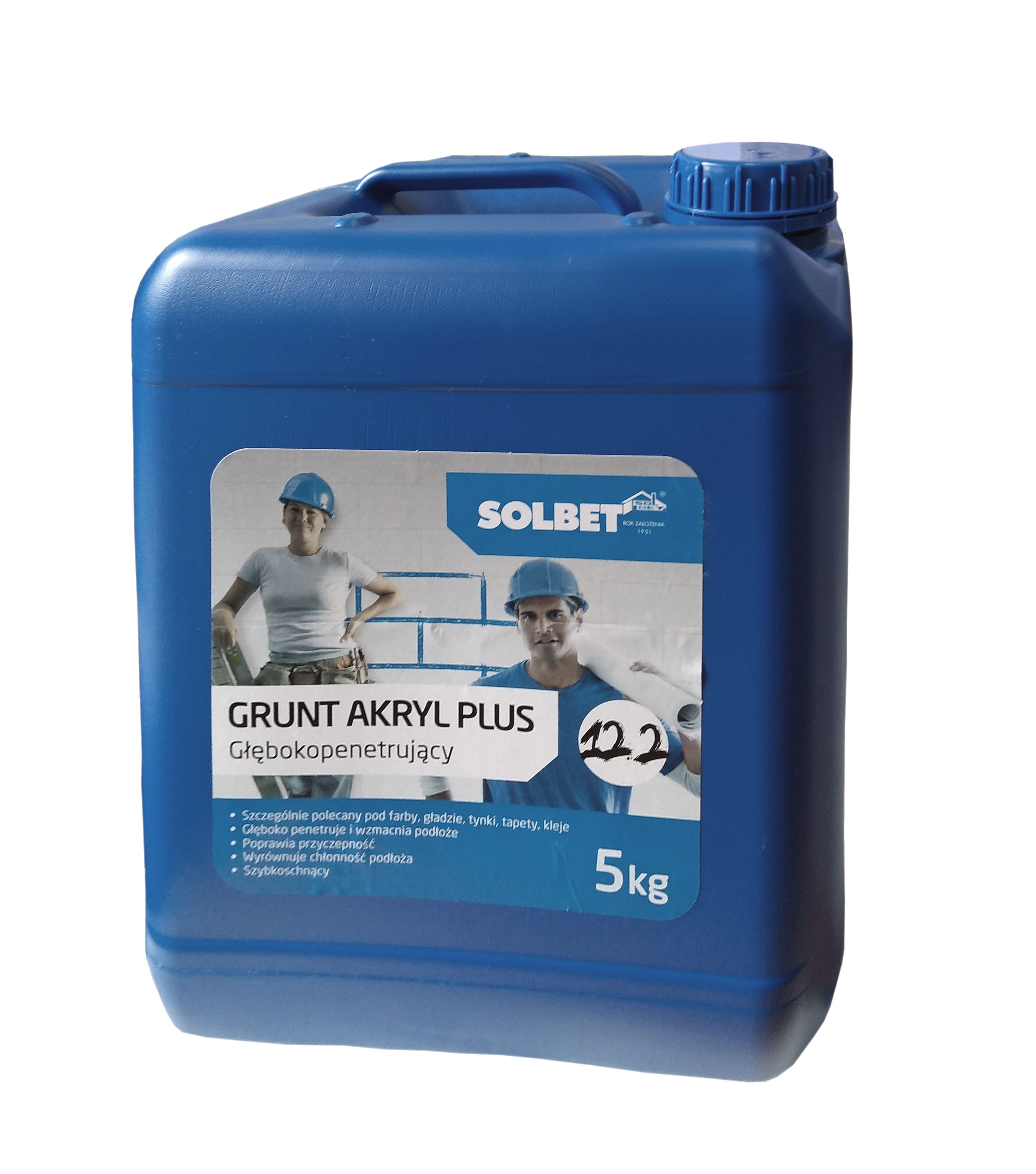 SOLBET Akryl Plus 12.2 primer er en vanndispersjon av akrylharpiks med tilsetning av hjelpemidler. Det trenger dypt inn i svake og spr? underlag, styrker dem, forbedrer vedheft av lim, plaster, maling etc. Det forhindrer dannelse av bobler og for rask utslipp av vann til underlaget. Skaper vanndampgjennomtrengelige belegg som beskytter mot misfarging.