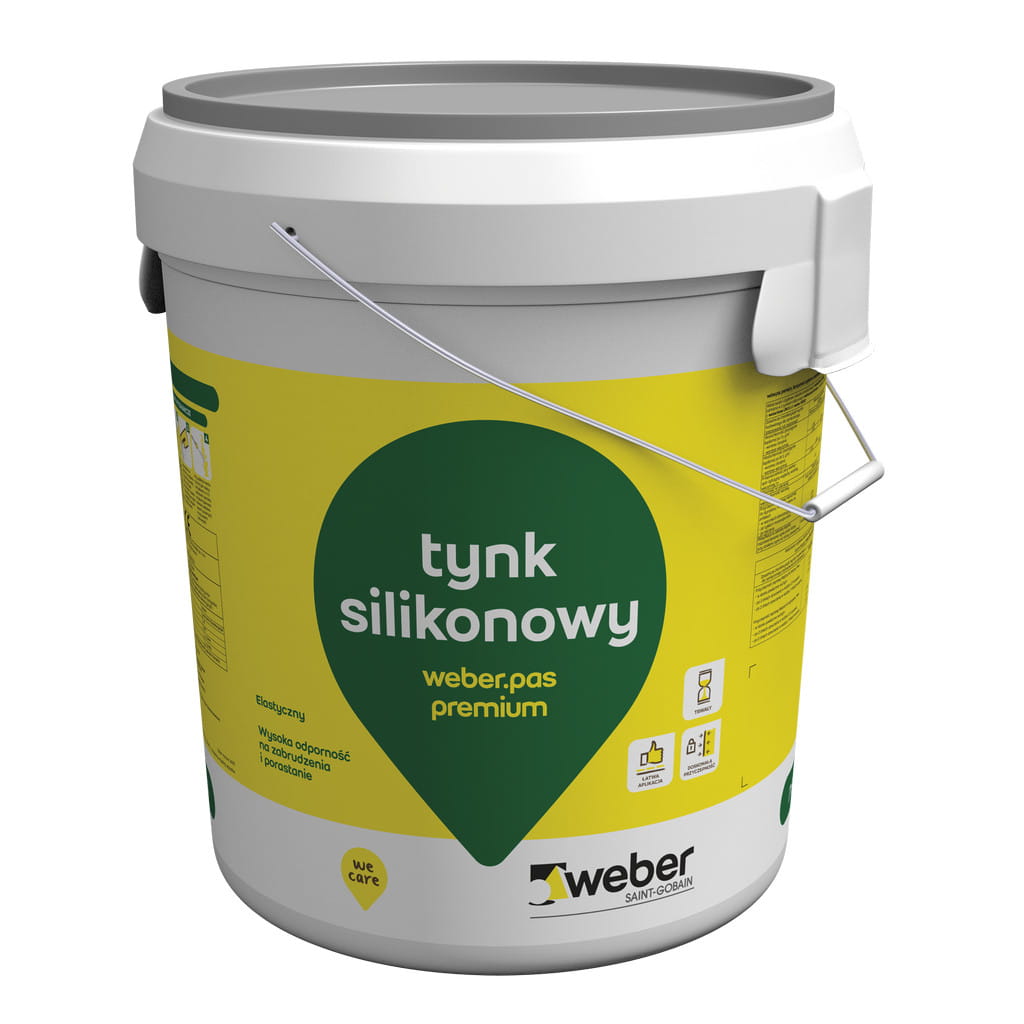 Nazwa długa: Tynk elewacyjny silikonowy WEBER.pas premium, Baranek 2 mm, 30 kg, ok. 3,4-3,9 kg/m2 1 grupa kolorów
