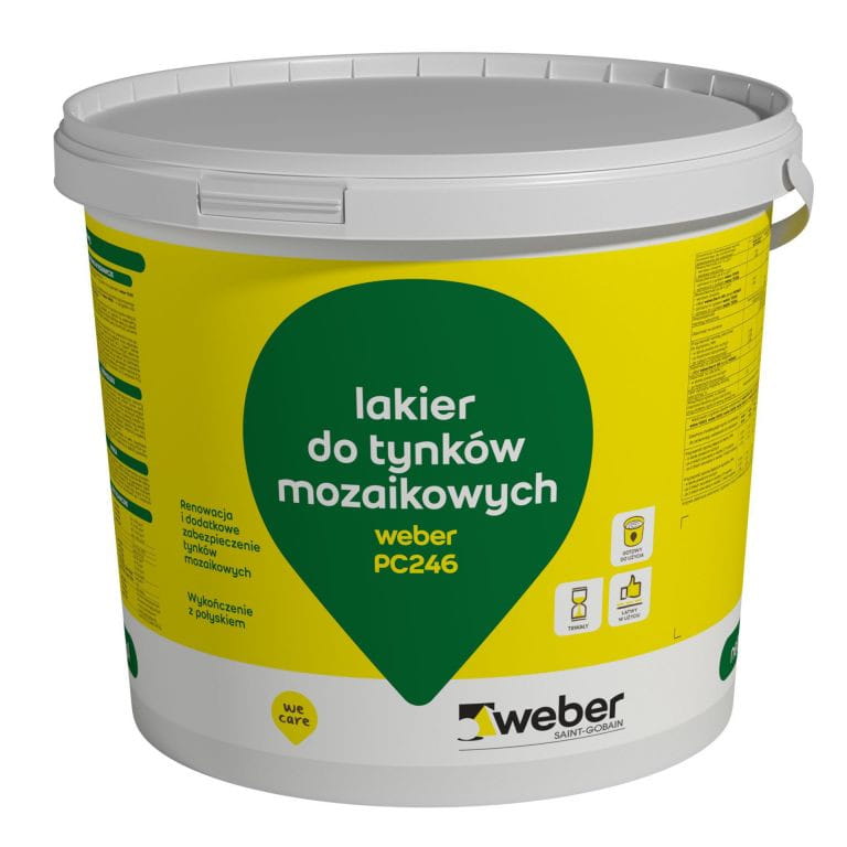 weber PC246 jest gotowym do stosowania produktem, bez konieczności rozcieńczania wodą, służącym do konserwowania i powierzchniowego wzmocnienia tynków mozaikowych