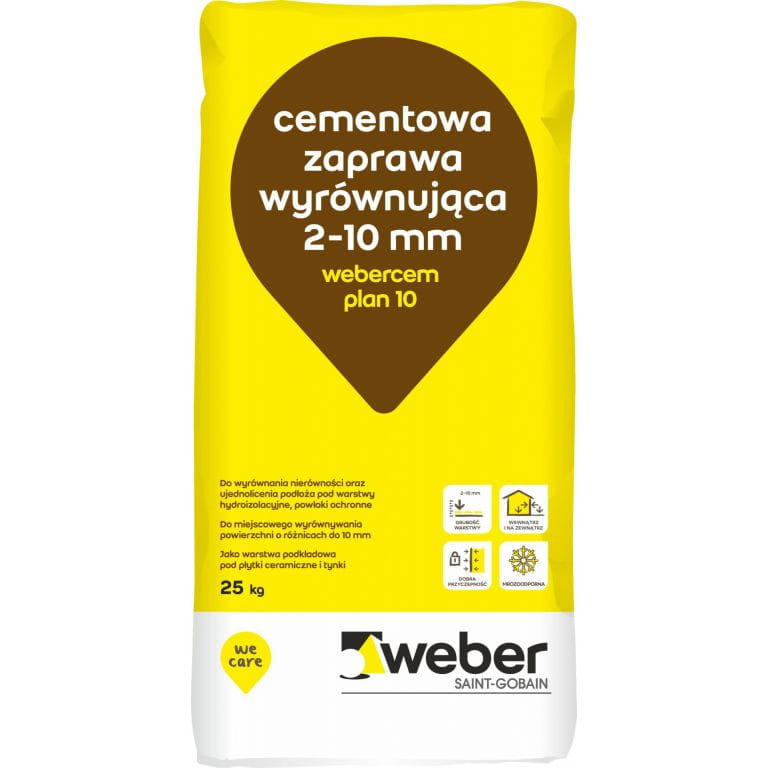Nazwa krótka: Webercem plan 10 - 25 kg - cementowa zaprawa wyrównująca, 2–10 mm Nazwa długa: Webercem plan 10 - 25 kg - cementowa zaprawa wyrównująca, 2–10 mm Opis: Zastosowanie produktu