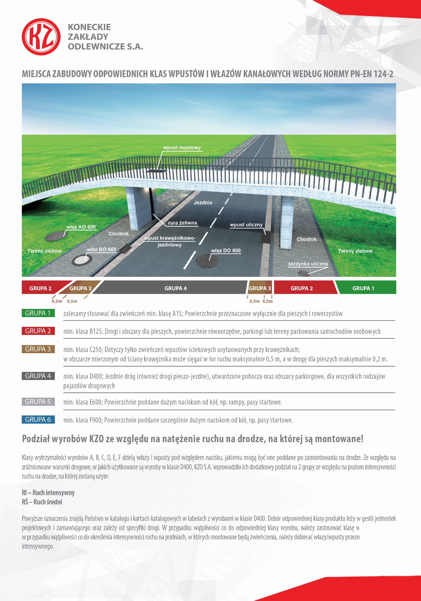 Żeliwo nie jest dodatkowo malowane, co jest całkowicie zgodne obowiązującymi normami i nie wpływa na właściwości użytkowe produktu (malowanie żeliwa wpływa jedynie na estetykę, a jednocześnie podnosi cenę). Miejsce zabudowy Grupa 3 (min. kl. C250) dotyczy tylko zwieńczeń wpustów ściekowych usytuowanych przy krawężnikach, w obszarze mierzonym od ściany krawężnika może sięgać w tor ruchu maksimum 0,5 m i w drogę dla pieszych maksimum 0,2 m.