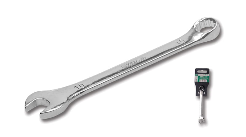 Klucz oczkowo-płaski 10 STALCO PERFECT to nieodzowny element wyposażenia każdego warsztatu mechanicznego. Zaprojektowany z dbałością o szczegóły, wykonany z wysokiej jakości stali chromowo-wanadowej, stanowi idealne rozwiązanie dla profesjonalistów poszukujących narzędzi, które łączą wytrzymałość z niezawodnością. Dzięki chromowanej, satynowej powłoce, klucz nie tylko prezentuje się estetycznie, ale także zapewnia ochronę przed korozją, co czyni go odpornym na trudne warunki pracy.