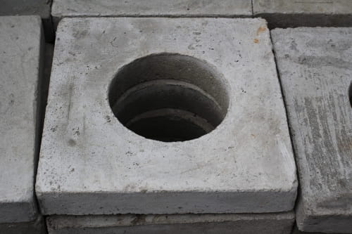 Nazwa krótka: Płyta nośna z otworem fi 20 do zasuw betonowa, 40x40x10 cm, uniwersalna, 30 szt./pal. Nazwa długa: Płyta nośna z otworem fi 20 do zasuw, betonowa 40x40 cm, gr. 10 cm, uniwersalna, 30 szt./pal. Opis: Prefabrykowana płyta betonowa do umocnienia skrzynek zasuw umieszczanych na sieciach wodociągowych.