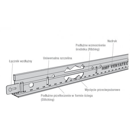 Modułowa budowa profilu AMF T 24/38 umożliwia elastyczne dostosowanie do różnorodnych projektów budowlanych. Dzięki kompatybilności z systemami łączenia typu Click oraz Hak, użytkownicy mogą swobodnie wybierać preferowaną metodę instalacji, co jest niezwykle istotne w przypadku specyficznych wymagań projektowych. Ponadto, jego podłużne wzmocnienia i przetłoczenia gwarantują stabilne i bezpieczne połączenie z innymi elementami konstrukcji sufitowej.