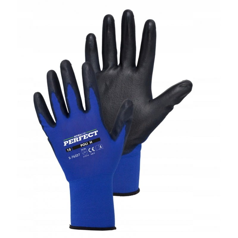 Model S-POLI H 10 wykorzystuje innowacyjną powłokę water PU na części chwytnej, co znacząco podnosi jego walory użytkowe. Powłoka ta nie tylko chroni przed wilgocią, ale również zapewnia lepsze przyleganie do powierzchni, co jest nieocenionym atutem w pracy wymagającej precyzyjności i bezpieczeństwa. W połączeniu z 18-gęstym splotem nylonu, rękawice cechuje wyjątkowa cienkość oraz bezszwowa konstrukcja, które łącznie wpływają na komfort noszenia i zakres swobody ruchów.