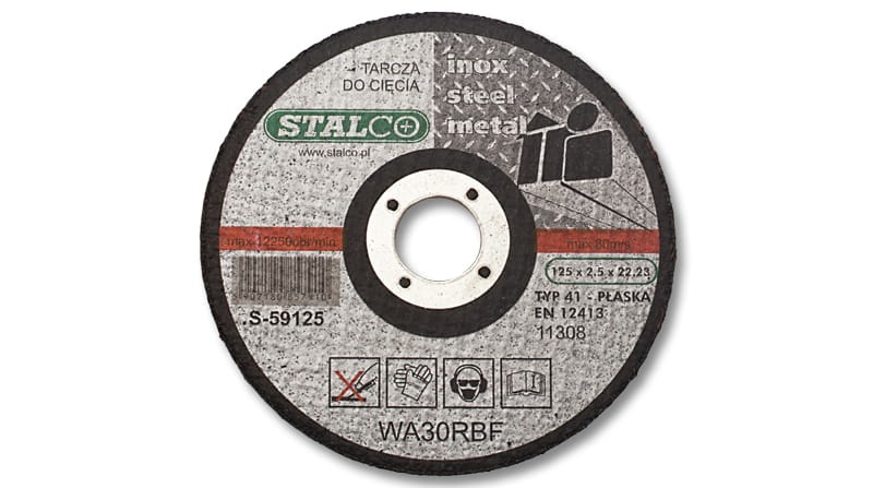 Tarcza metalowa STALCO S-59125 ma średnicę 125 mm, grubość 2,5 mm oraz standardowy otwór montażowy o średnicy 22,23 mm, co sprawia, że jest kompatybilna z większością dostępnych na rynku urządzeń tnących. Typ konstrukcji - płaski (typ 41) - pozwala na łatwe i stabilne prowadzenie narzędzia, a dodatkowo szeroki zakres zastosowań sprawia, że jest odpowiednia do cięcia zarówno stali, jak i innych wyrobów metalowych. Tarcza została także wyposażona w redukcje z widią, co pozwala na łatwe dostosowanie do osi o średnicy 20 i 16 mm.