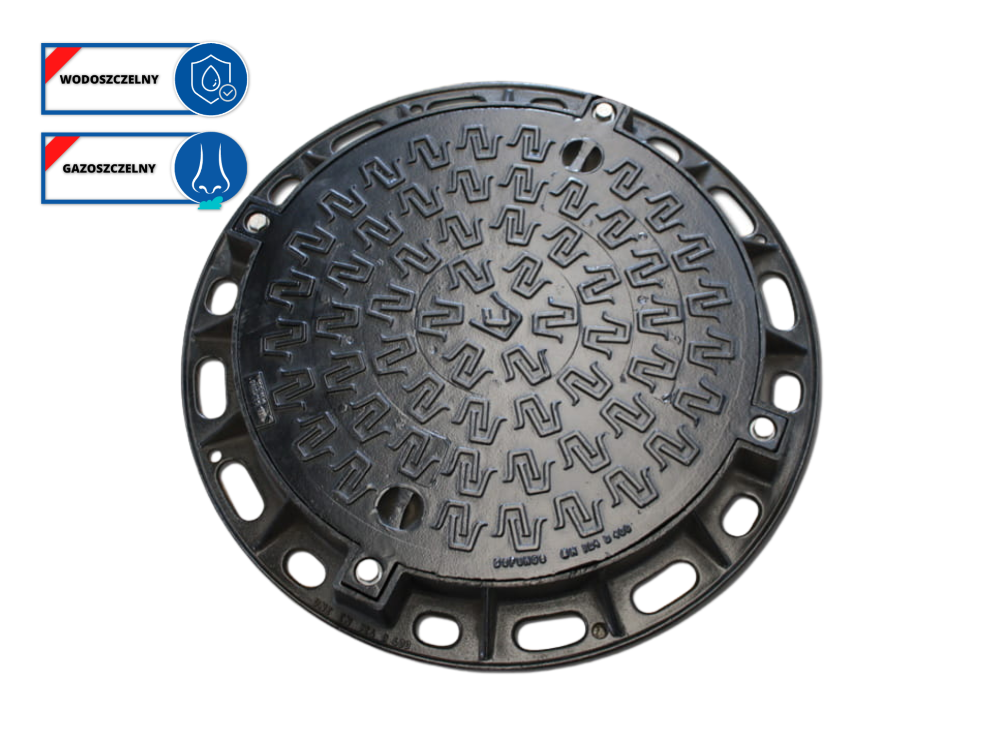 Najnowsze rozwiązania technologiczne zastosowane w projekcie włazu stawiają bezpieczeństwo i wygodę użytkowania na pierwszym miejscu. System zamknięcia pokrywy na 4 śruby ze stali nierdzewnej zapobiega odkręceniu się pod wpływem wibracji, co dodatkowo wzmacnia jego funkcję antywłamaniową. Łatwość manipulacji pokrywą jest wynikiem siły podnoszenia mniejszej niż 18 kN, co znacznie upraszcza obsługę. Specjalnie zaprojektowana uszczelka przeciwdziała przedostawaniu się cieczy i oparów, wspierając funkcję przeciwzalewową i zabezpieczając przed niepożądanym dostępem.