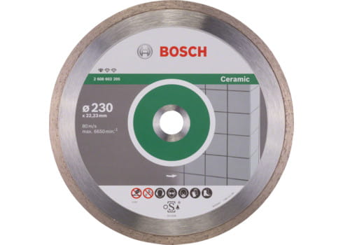 Standard för Ceramics diamantkapskiva möjliggör effektiv kapning i plattor. Den fasta skärkragen säkerställer utmärkta resultat p? alla typer av plattor. Boschs kompetenscenter för diamanttekniker i Schweiz st?r för den höga kvaliteten. För användning vid skärning av keramik, porslin och stengods. Lämplig för användning med vinkelslipar.